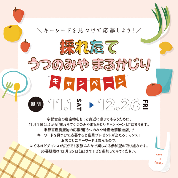 今年度も「宇都宮のうまいもん」が当たる地産地消キャンペーンが始まります!