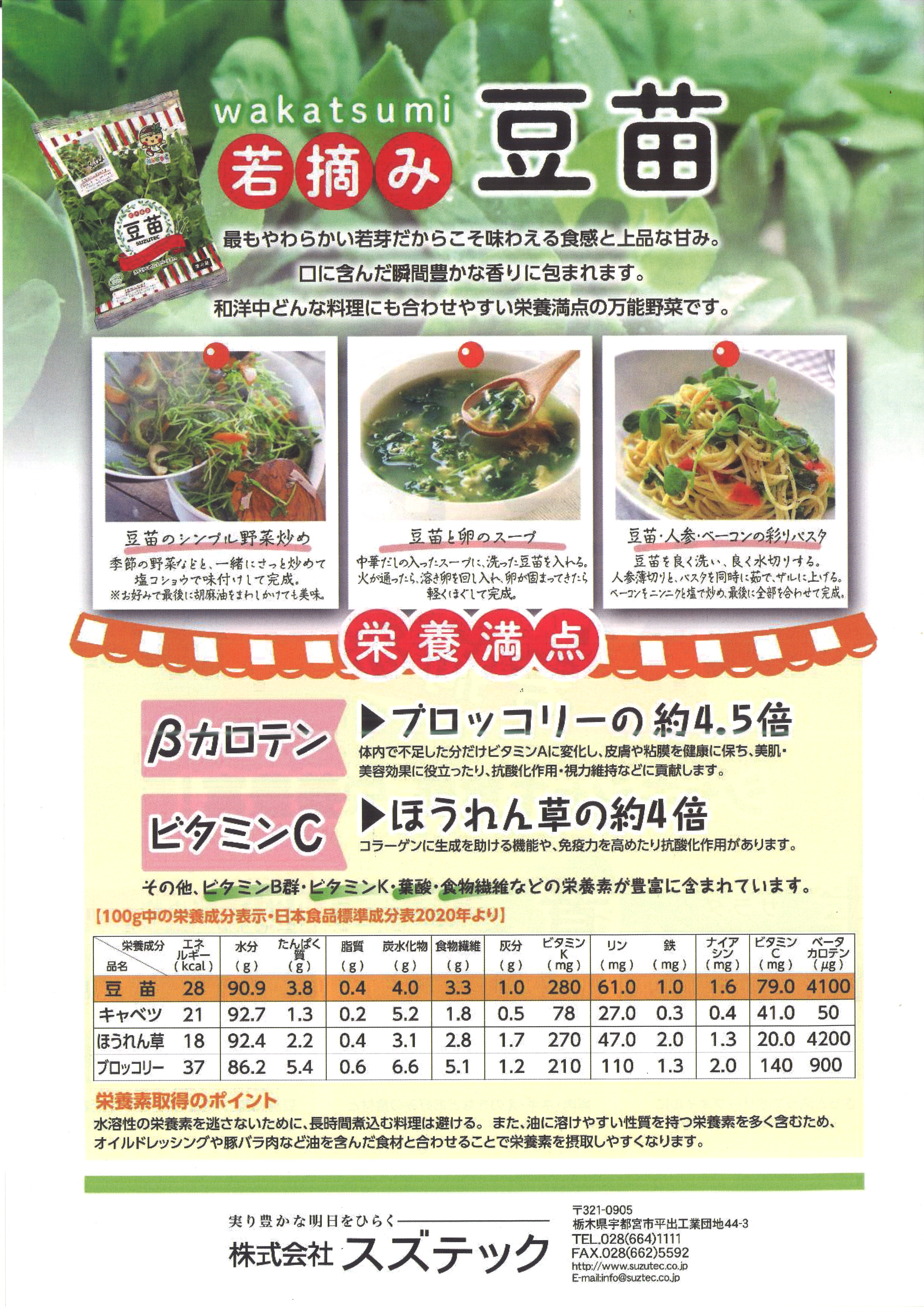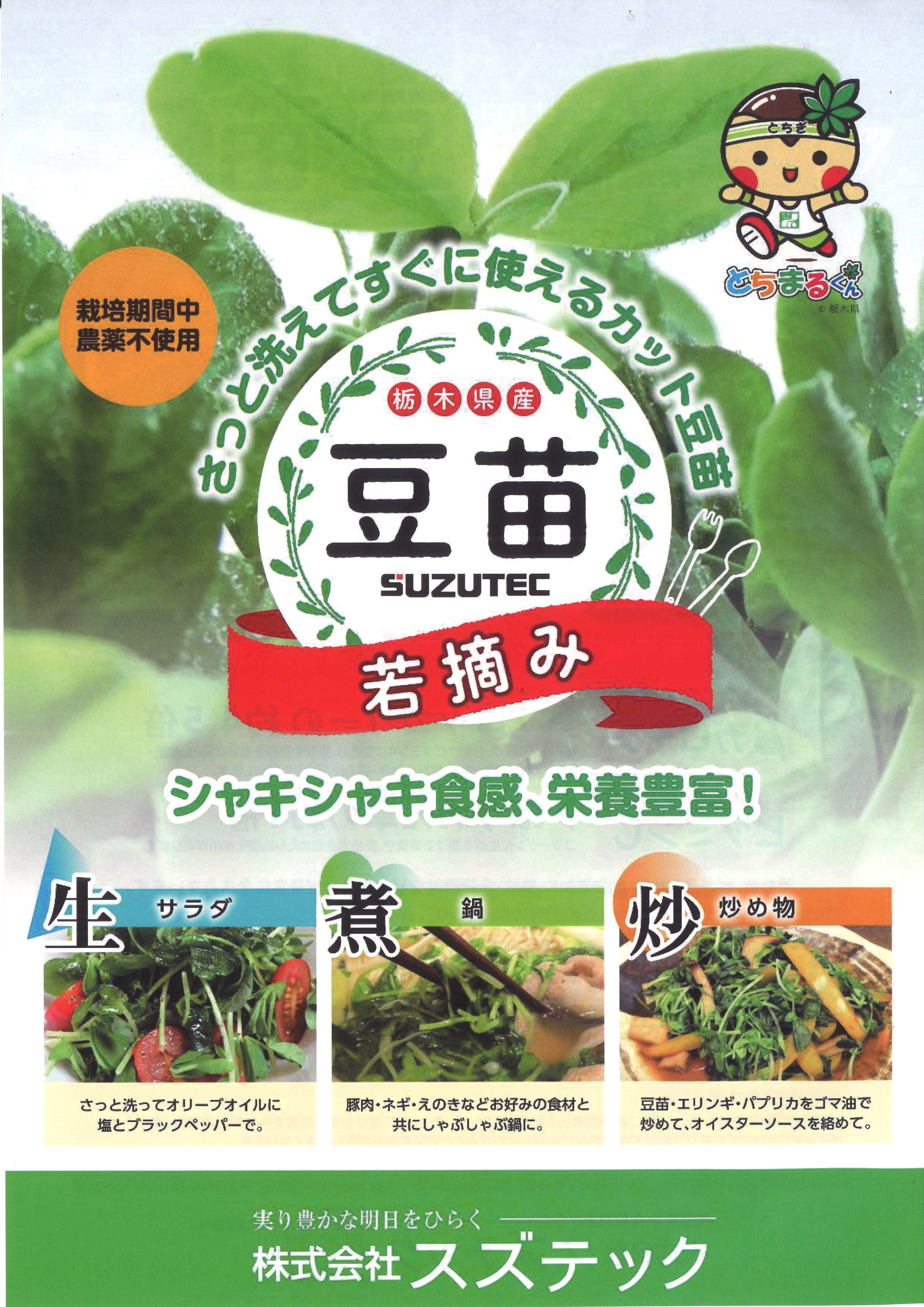 平出工業団地の会社敷地内のハウスで、「豆苗」という野菜を栽培し、宇都宮市内の百貨店様やスーパー様で販売させて頂いています。