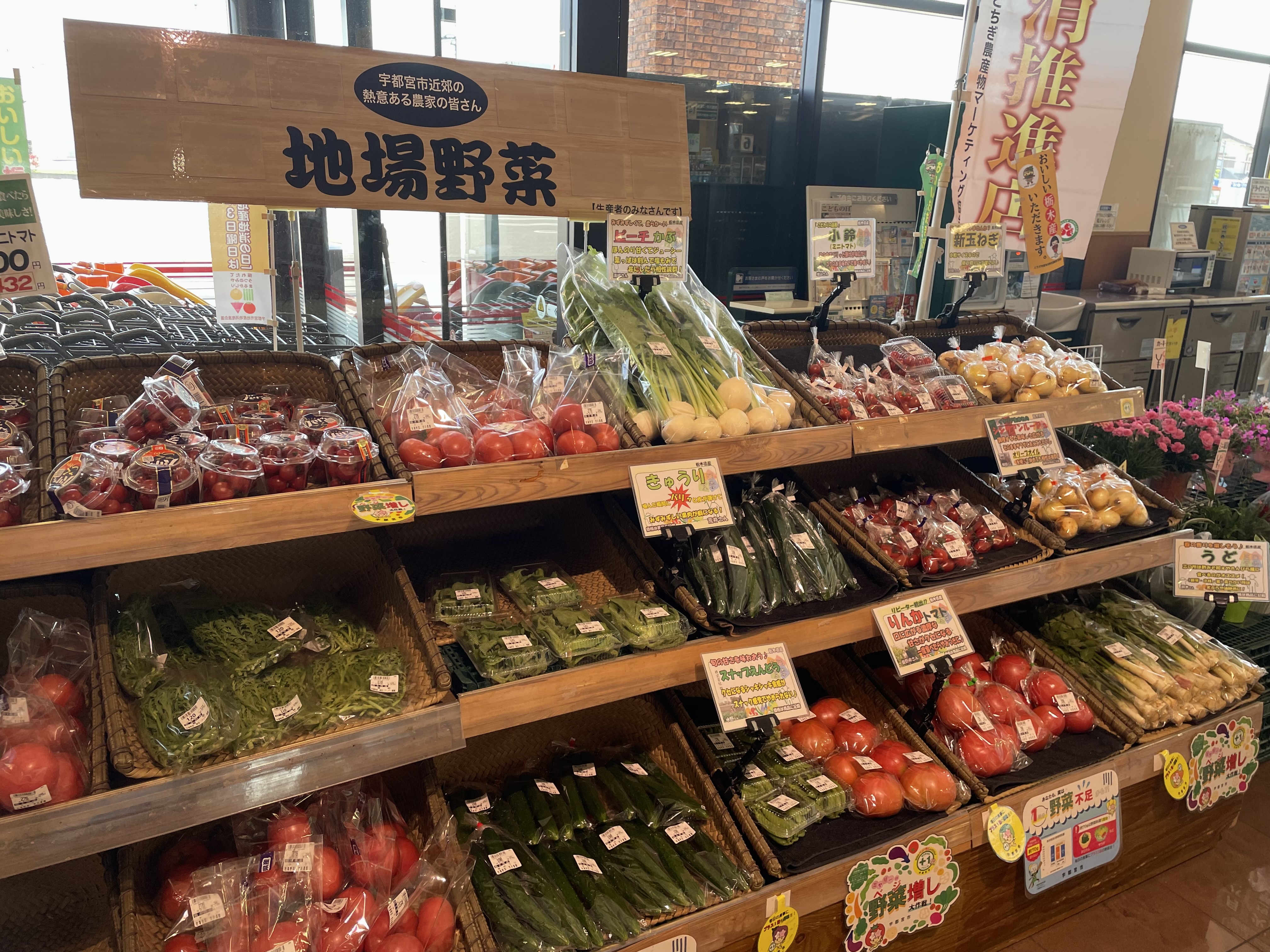 - 野菜(きゅうり)、野菜(なす)、野菜(ほうれん草)、野菜(春菊)、野菜(にんじん)、野菜(大根)、野菜(その他)、いちご(とちおとめ)、いちご(とちあいか)、いちご(スカイベリー)、梨(にっこり)、梨(幸水)、梨(豊水)、梨(プレミアム13)、トマト(その他)、アスパラガス(その他)、ねぎ(その他)