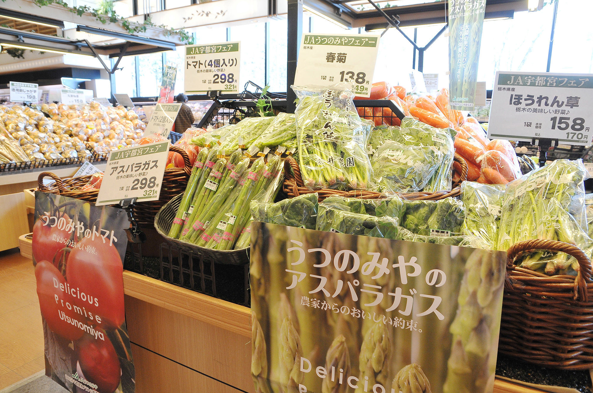 - 野菜(にら)、野菜(なす)、野菜(たまねぎ)、野菜(その他)、畜産物(宇都宮牛)、米(その他)、いちご(その他)、梨(その他)、トマト(その他)、しいたけ(その他)、ねぎ(その他)
