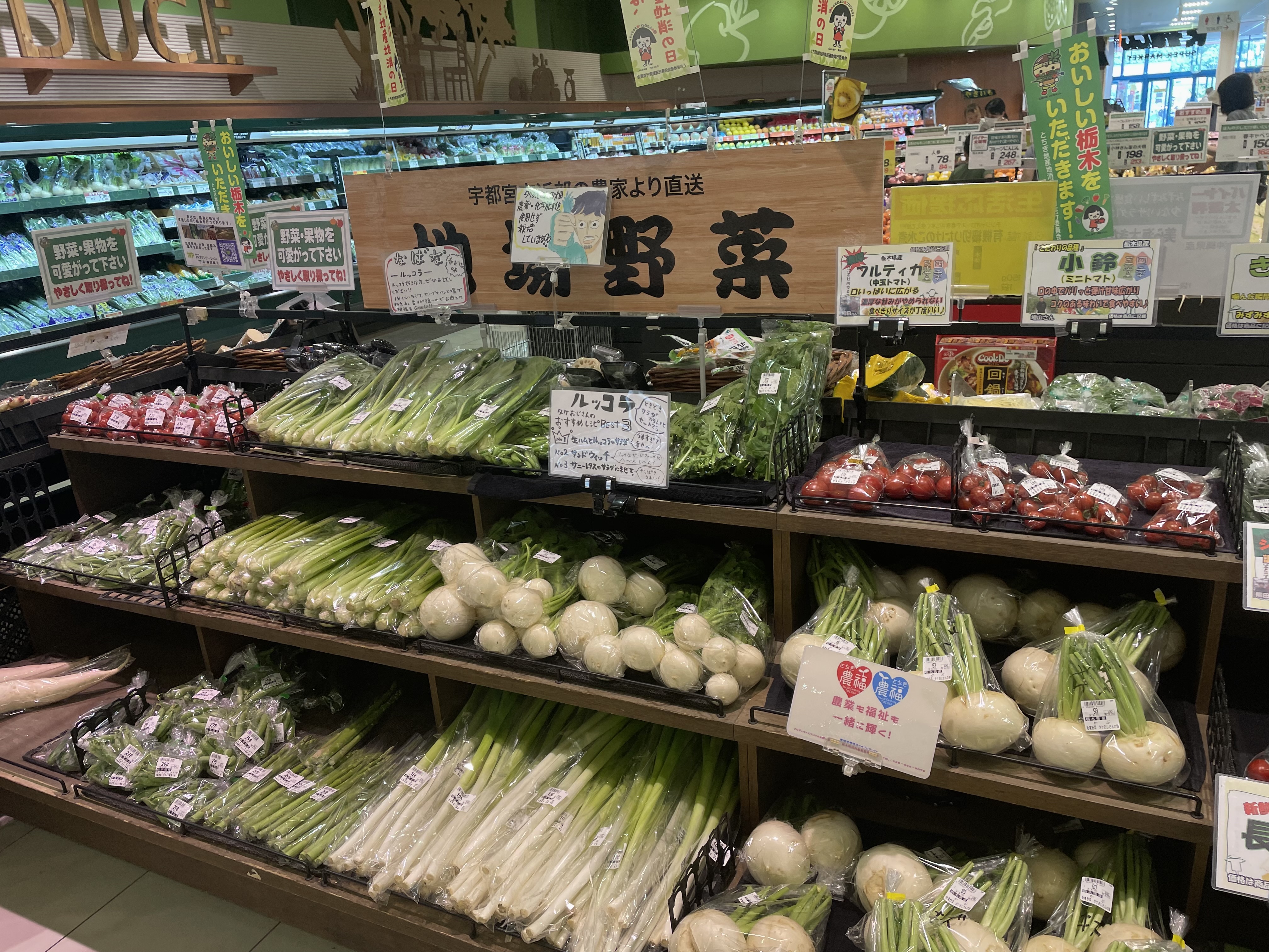 - 野菜(にら)、野菜(なす)、野菜(ほうれん草)、野菜(春菊)、野菜(小松菜)、野菜(大根)、野菜(その他)、いちご(とちおとめ)、いちご(スカイベリー)、梨(にっこり)、梨(幸水)、梨(豊水)、梨(プレミアム13)、梨(その他)、トマト(その他)、アスパラガス(その他)、ねぎ(その他)、ねぎ(新里ねぎ)