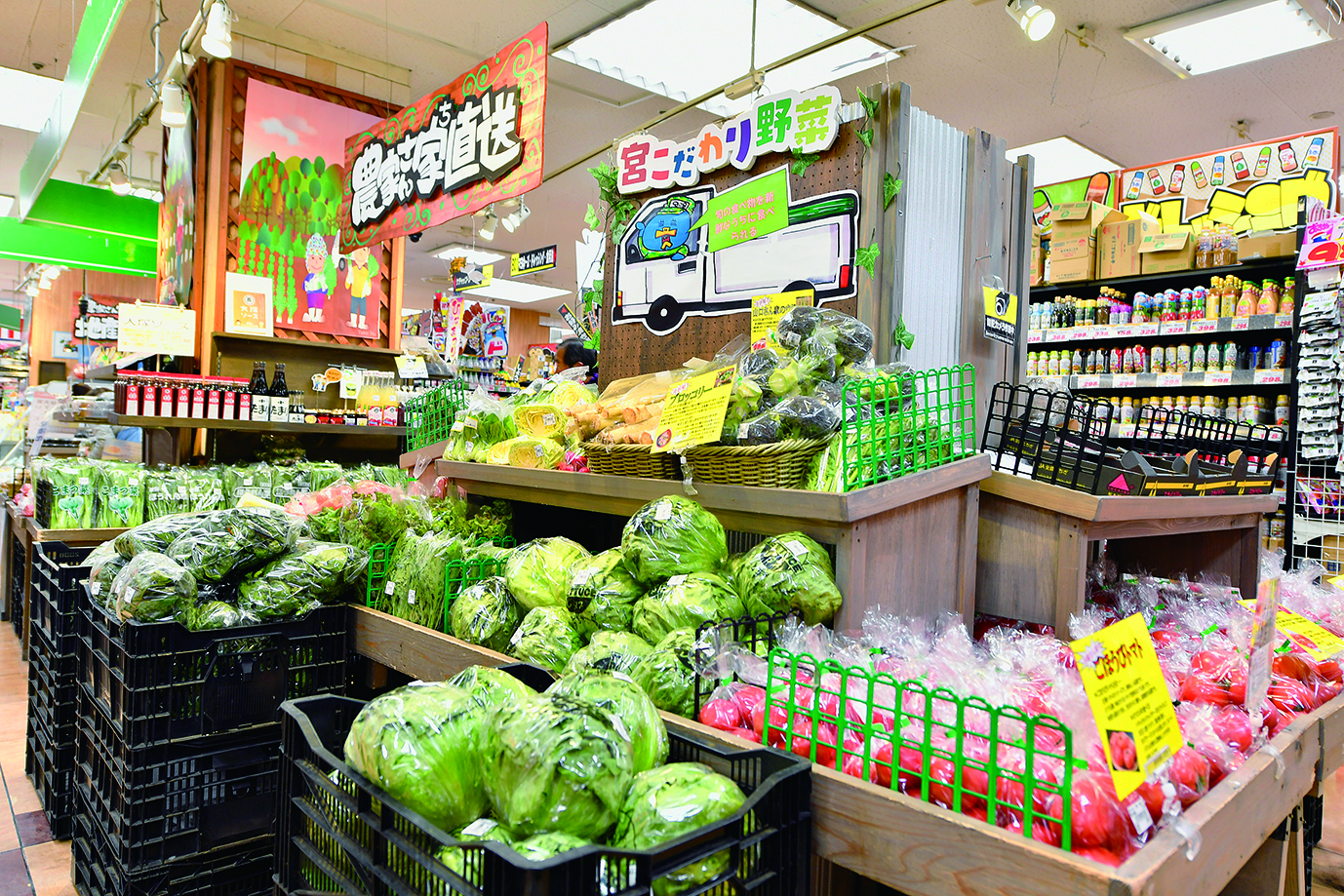 農家さん家直送の「宮こだわり野菜」を取り揃えております。ぜひお越し下さいませ!